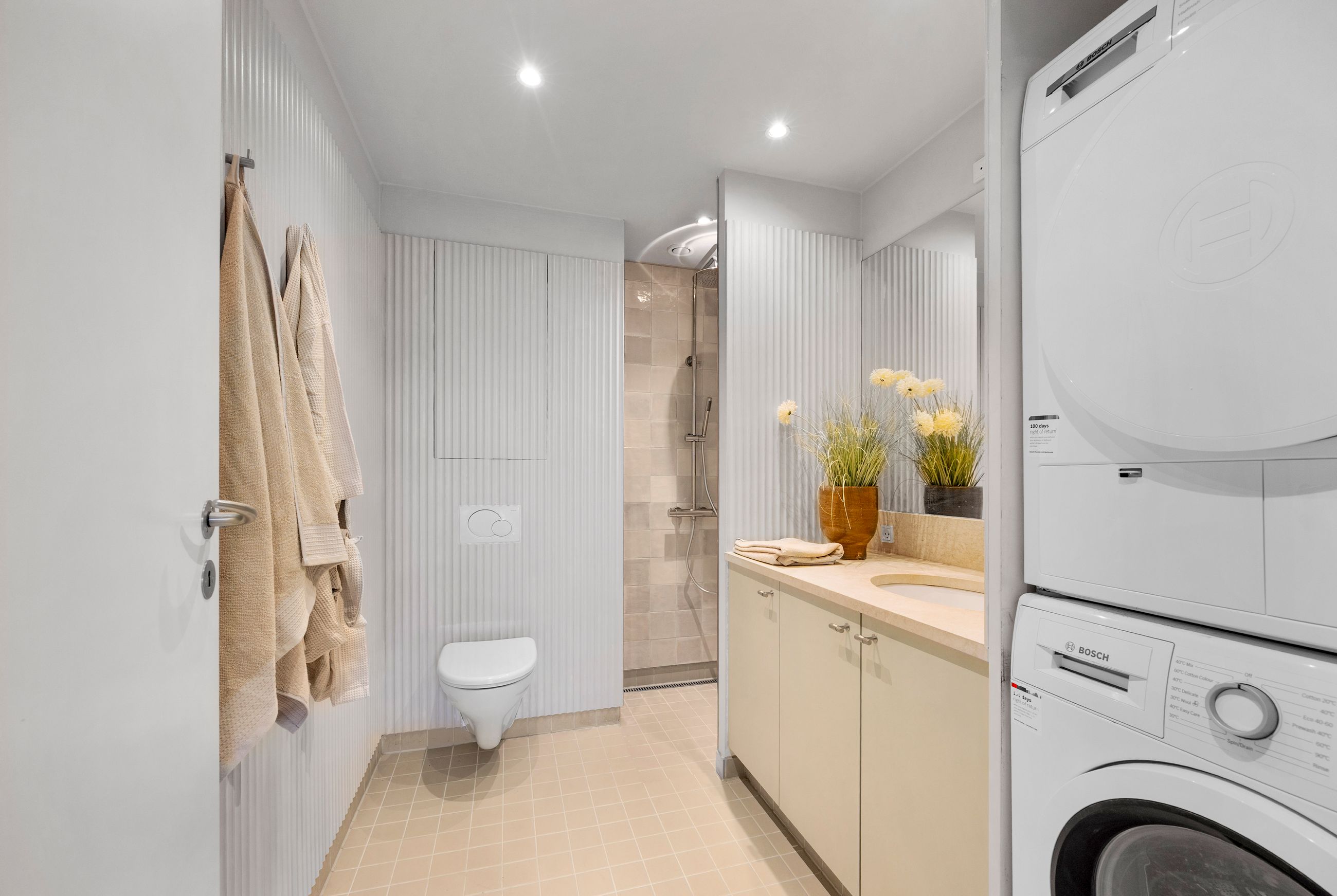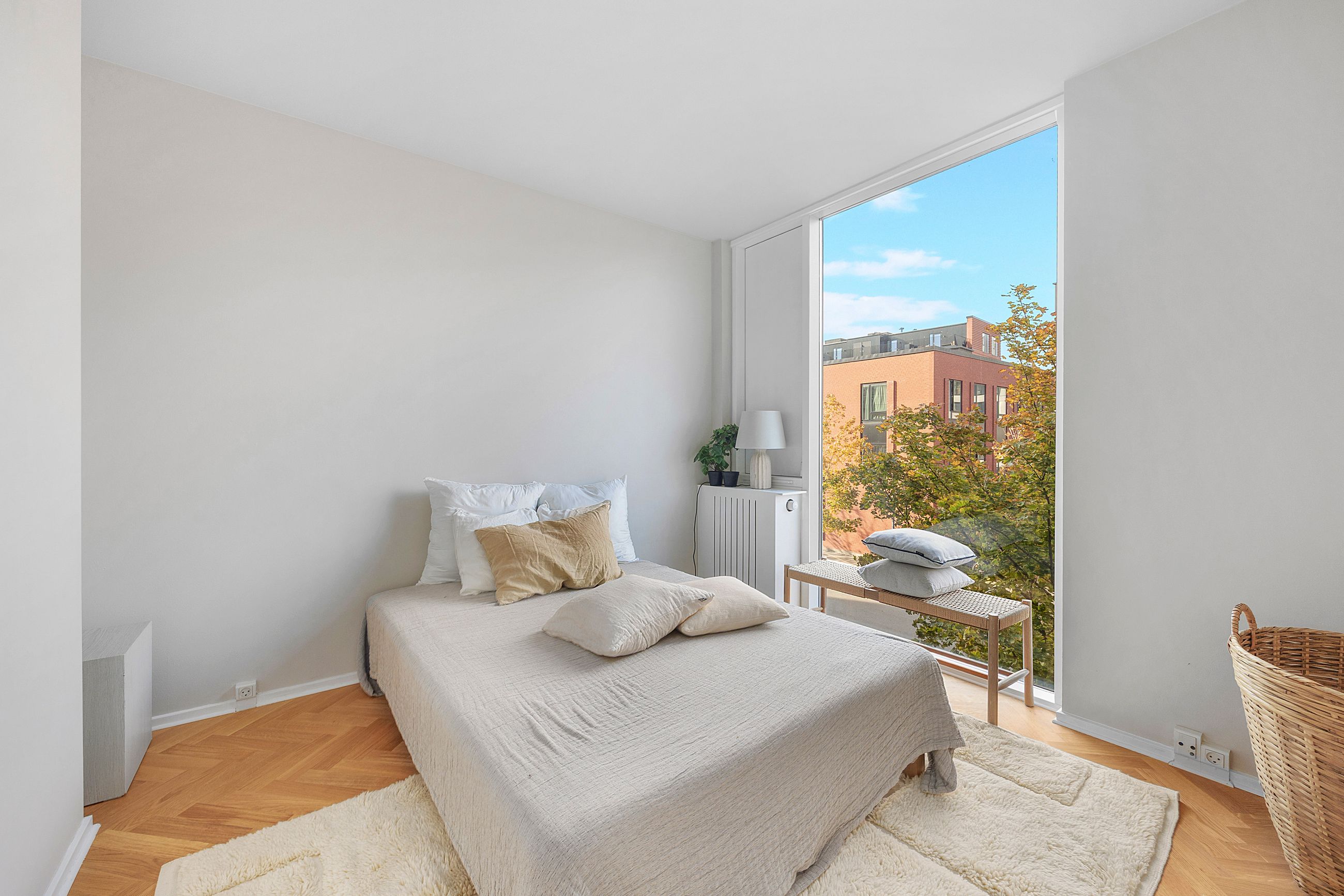 De tre soveværelser er alle regulære og kan indrettes som børneværelser, kontor eller gæsteværelse alt efter behov. Badeværelset er moderne og rummeligt med plads til vaskefaciliteter, og der er god opbevaringsplads i boligen.