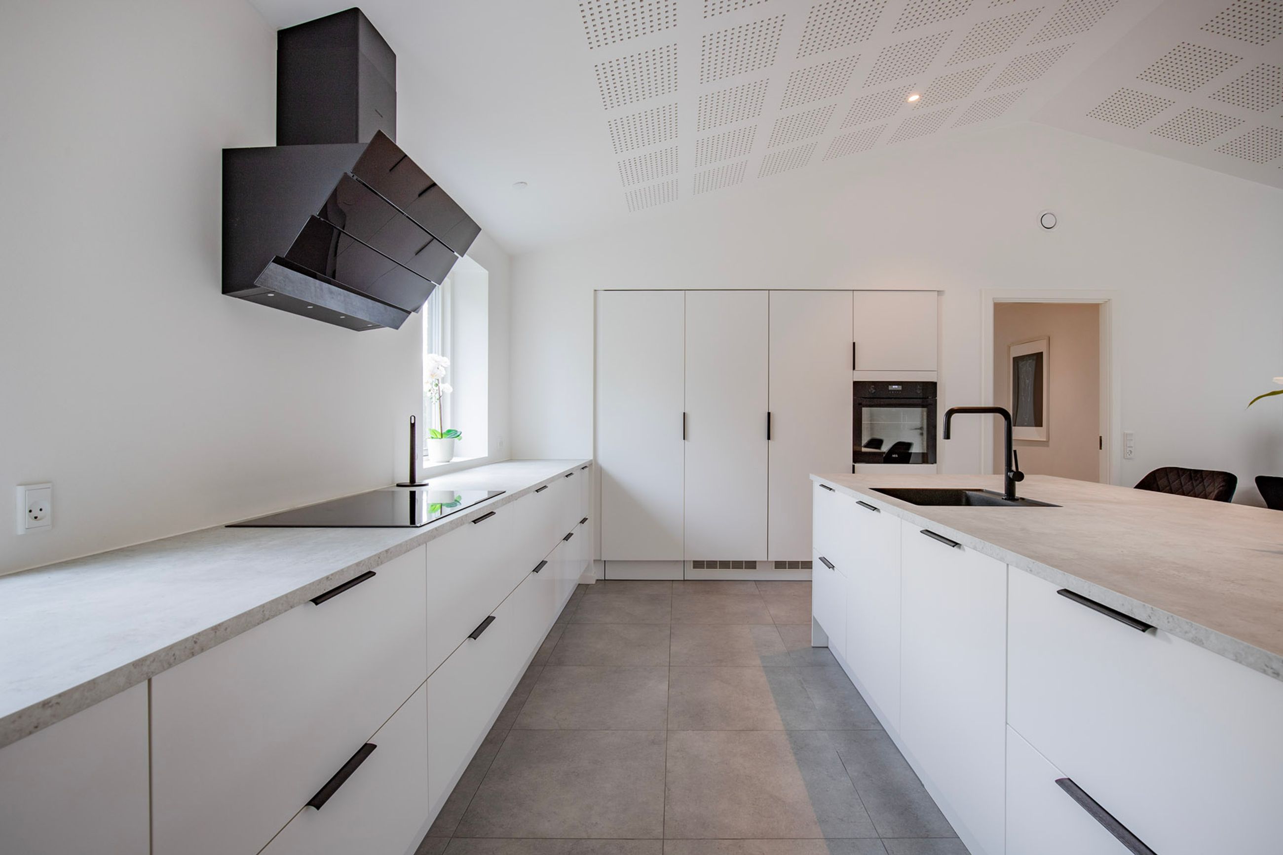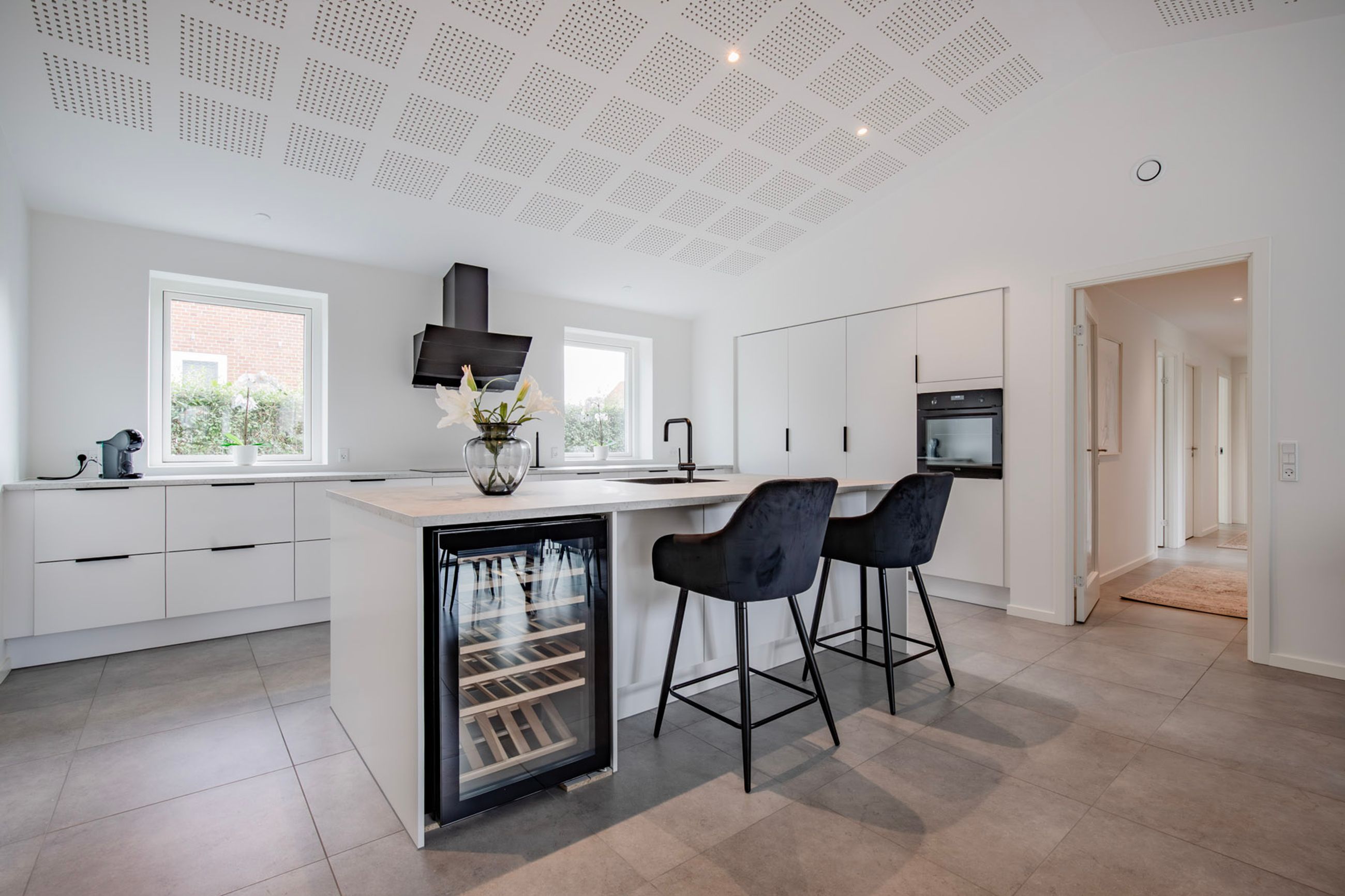- Et imponerende køkken-alrum med masser af lysindfald og god plads til både hverdag og gæster.