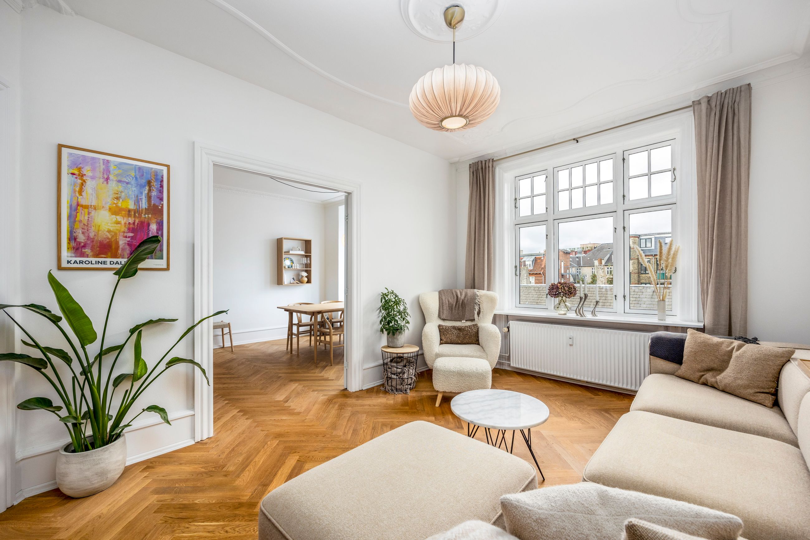 Velkommen til Ingemannsvej 30, 4. tv. – en sjældent udbudt lejlighed, der kombinerer herskabelig charme med moderne komfort. Her bor du øverst i ejendommen med ro og udsigt – og byen lige udenfor døren tæt på caféer, indkøb og metro.