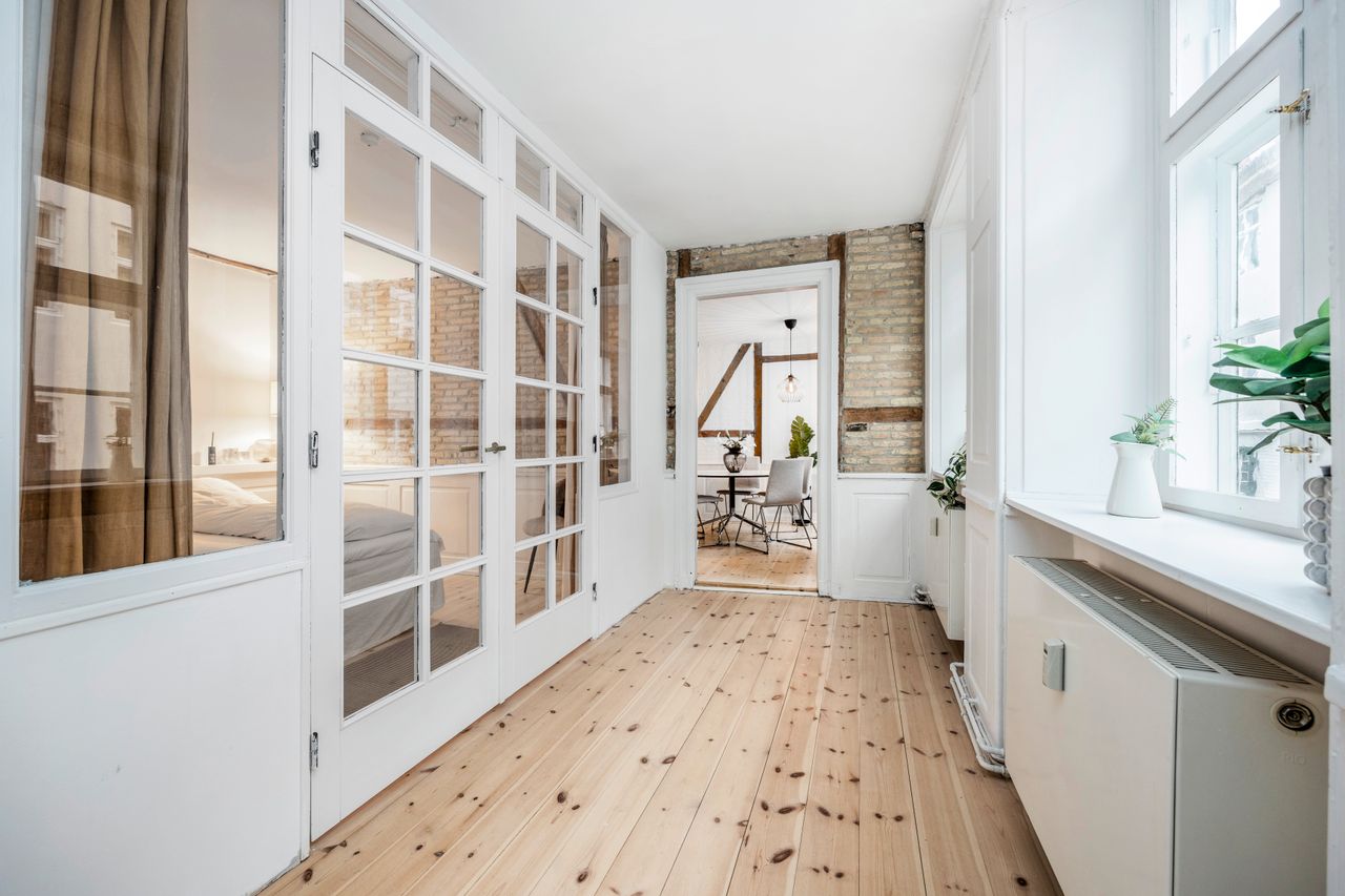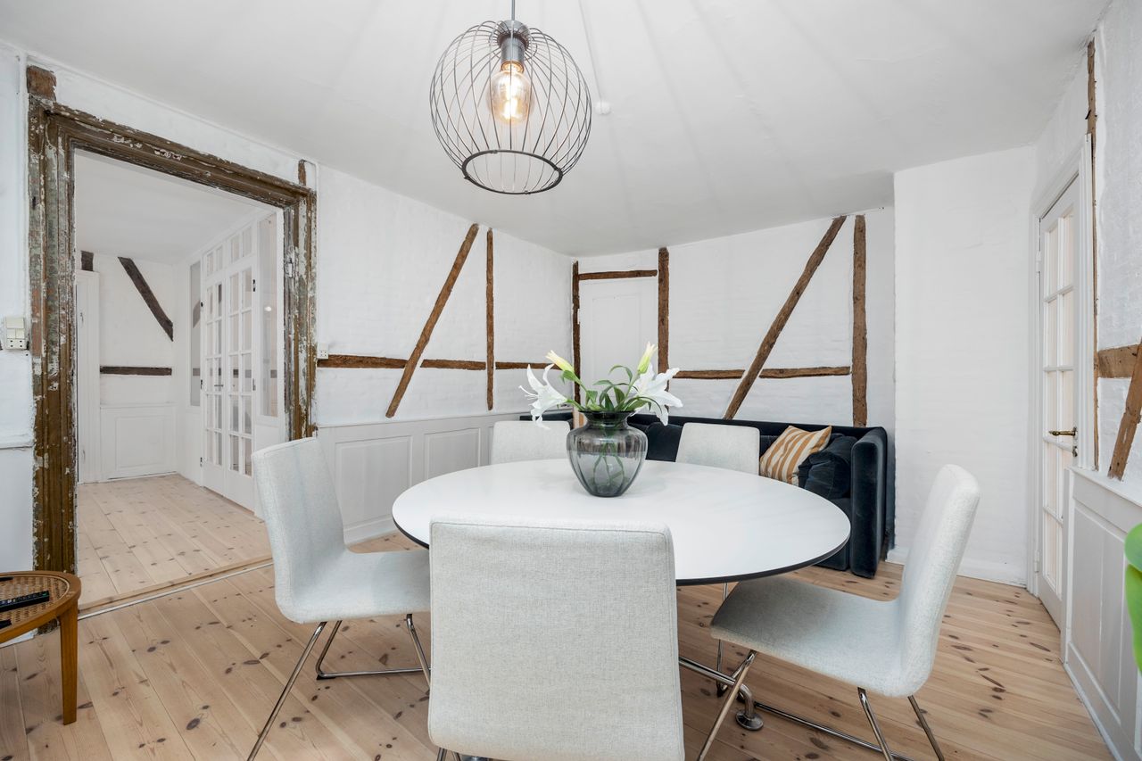 De originale detaljer som bindingsværk bringer en særlig varme og autenticitet til boligen, der er nænsomt opdateret med moderne løsninger og kvalitetsmaterialer. Den unikke kombination af det gamle og det moderne gør denne lejlighed til noget helt særligt.